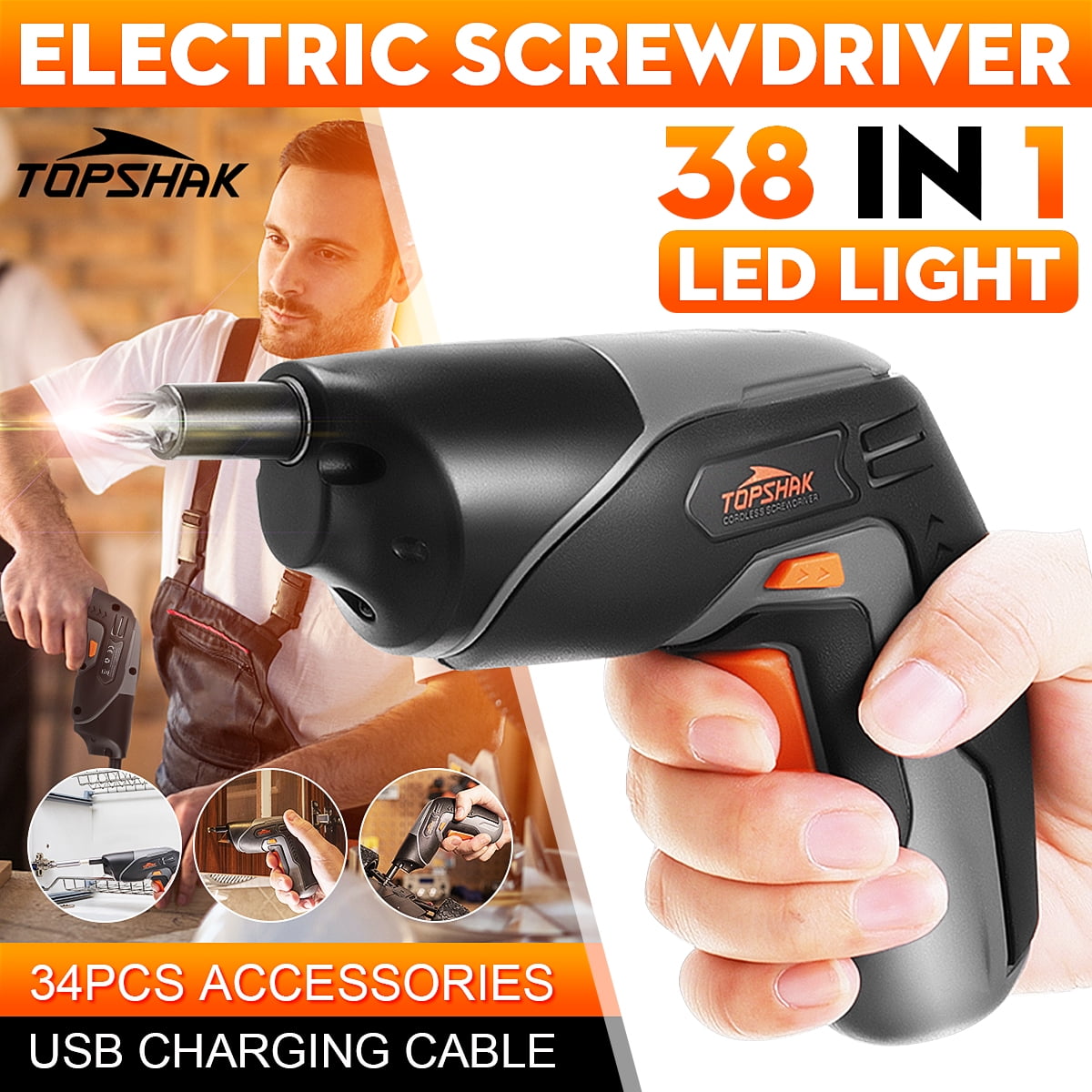 Topshak 4v Cordless Electric Screwdriver 38 In 1 Usb Rechargeable Battery Power Screwdriver Set Screw Gun Drill Kit For Home Repair Diy Walmart Com